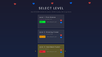 Terminez chaque niveau avec un score suffisant pour assister au moment magique où les deux cœurs fusionnent en un seul. Un spectacle de lumière et de couleurs qui vaut toutes les déclarations.